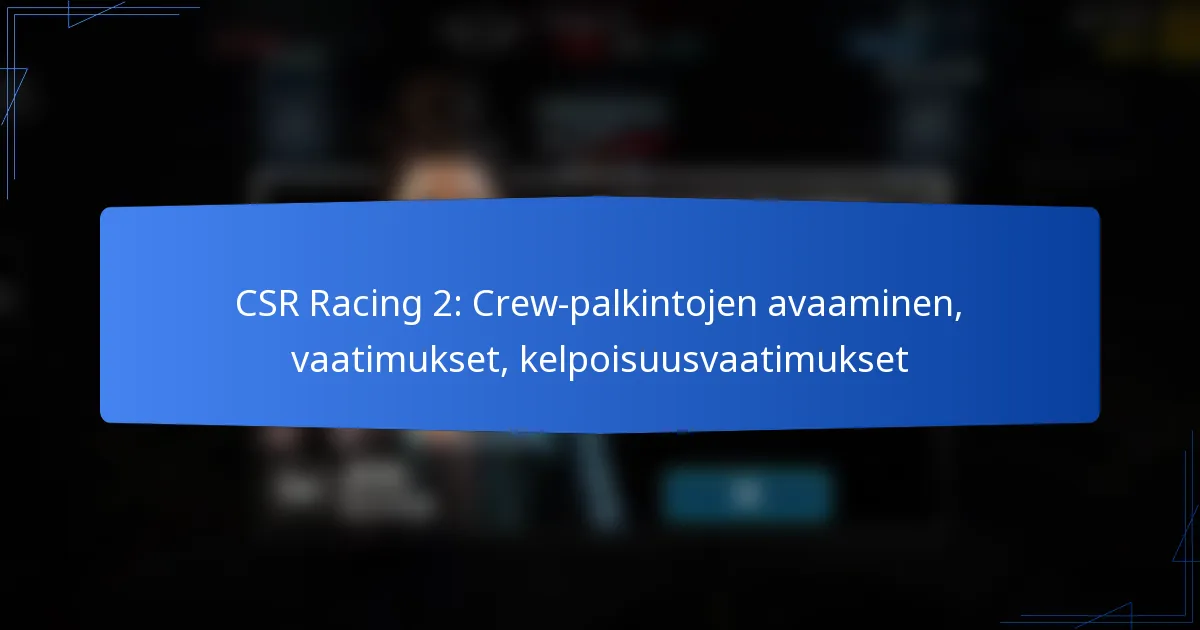 CSR Racing 2: Crew-palkintojen avaaminen, vaatimukset, kelpoisuusvaatimukset